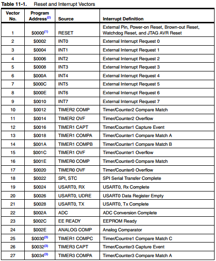 ATmega128a Datasheet내 인터럽트에 관한 내용은 다음과 같다.
