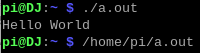 Hello.c 를 실행시키려면 아래과 같이 터미널에서 실행시켜야한다.