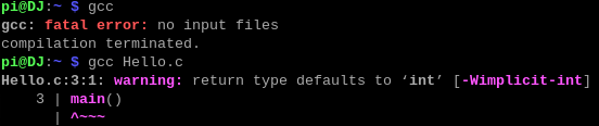아래와 같이 코딩을 한 후 'gcc' 명령어를 실행시키면 다음과 같은 경고 화면이 출력되는 것을 확인할 수 있다.