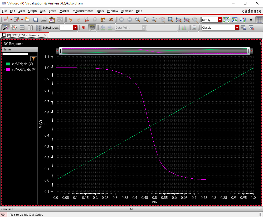 오늘은 Cadence의 Virtuoso를 활용해보려 한다. Cadence VirtuosoMobaXterm을 실행한 후 다음과 같이 명령어를 입력한다. 명령어를 입력하면 다음과 같은 창이 뜨는 것을 확인할 수 있다. Tools에서 Library manager를 클릭하면 다음과 같은 화면이 뜬다. 다음은 Library를 생성하는 방법이다.아래와 같은 과정대로 진행을 하게 되면,아래의 사진처럼 나만의 Lib가 생긴 것을 확인할 수 있다. 이번에는 NOT 연산자를 구현하려고 한다. 다음과 같이 새로운 File을 생성한다. 단축키 'I'를 누르면 다음과 같은 창이 뜨는 것을 확인할 수 있다.PMOS와 NMOS를 선택해서 추가한다. 단축키 'Q'를 누르면 속성 화면으로 통해진다.다음과 같이 설정한다. 다음과 같이..