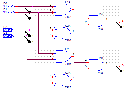 이번에는 인코더와 디코더에 대해서 다룰 예정이다.인코더인코더(Encoder)는 여러 개의 입력 중에서 신호가 주어진 입력의 정보를 코드로 변환하는 디지털 회로를 의미한다.이번에 다를 인코더는 4 to 2 인코더로, 4개의 입력에 따른 2비트 코드출력으로 구성된다. 4 to 2 인코더의 진리표는 아래와 같다.D0D1D2D3코드AB100000010001001010000111 진리표를 바탕으로 논리식을 도출해 내면 아래와 같다. A = (D0 + D1)'(D2 ⊕ D3), B = (D0 + D2)'(D1 ⊕ D3) 도출한 논리식을 토대로 회로를 구성하면 아래와 같다. 회로를 시뮬레이션하게 되면 아래와 같은 결과가 도출된다. 시뮬레이션 결과는 위의 진리표와 동일한 것을 확인할 수 있다. 디코더디코더는 인..